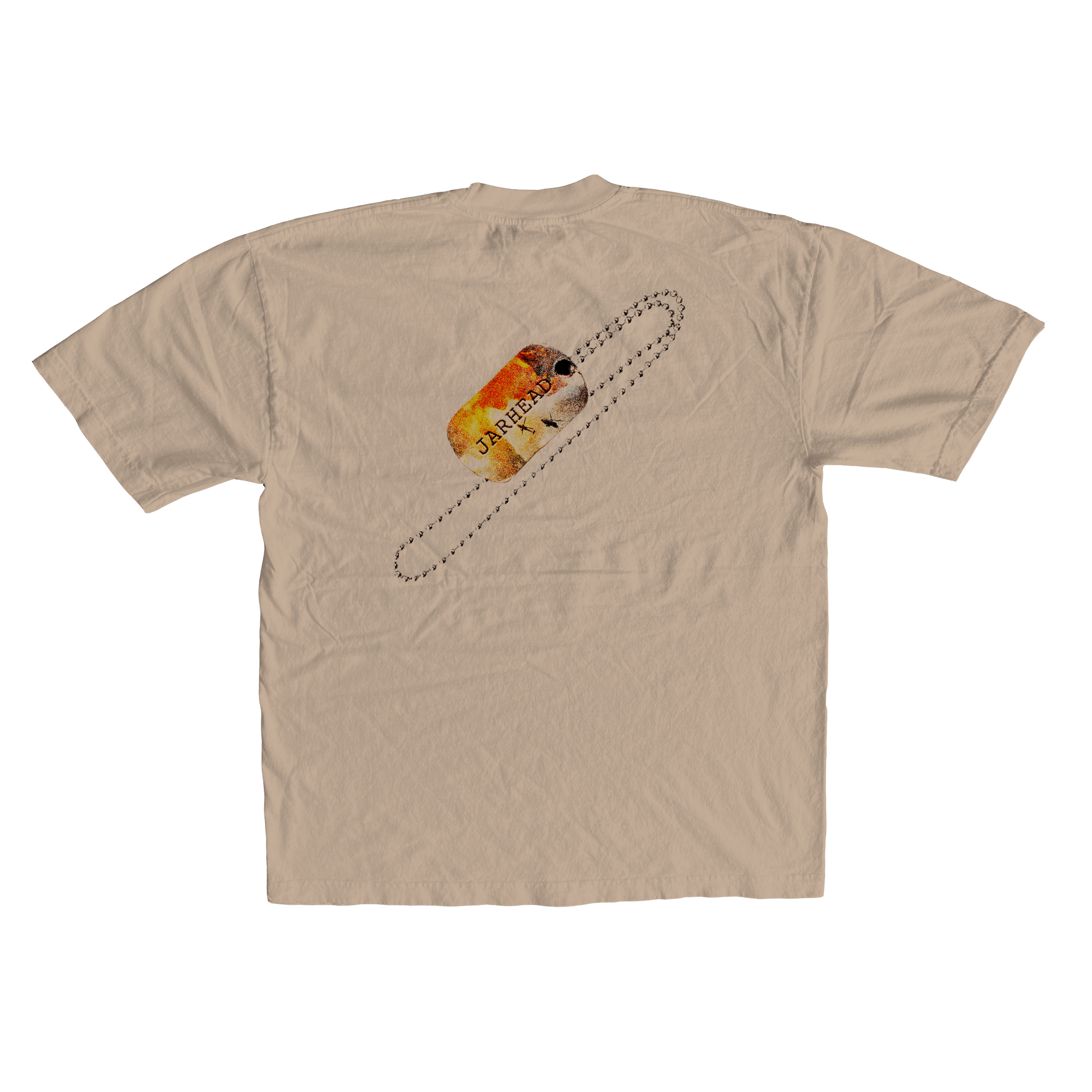 • Screen printed with plastisol ink on beige T-shirt