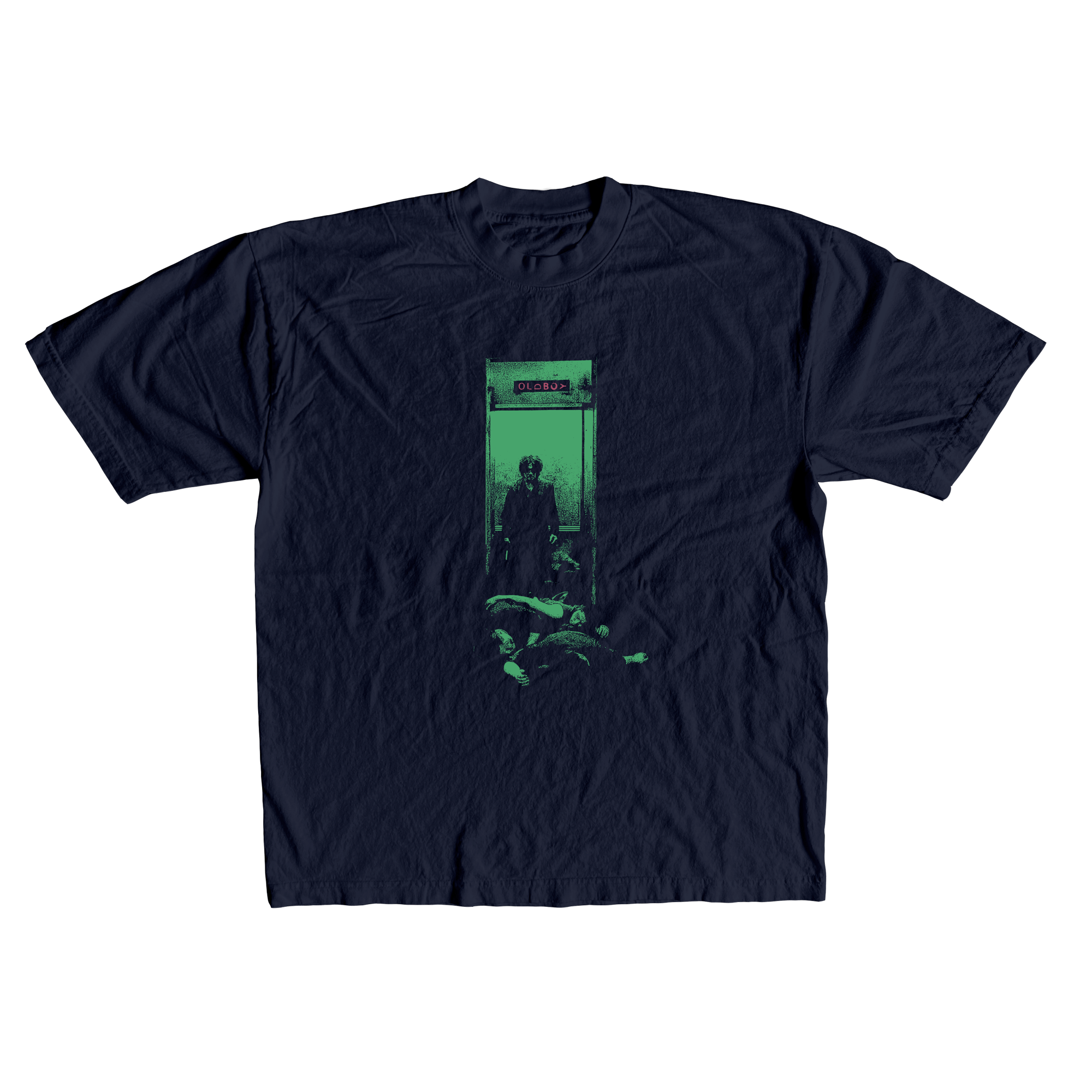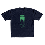 • Screen printed with plastisol ink on navy blue T-shirt